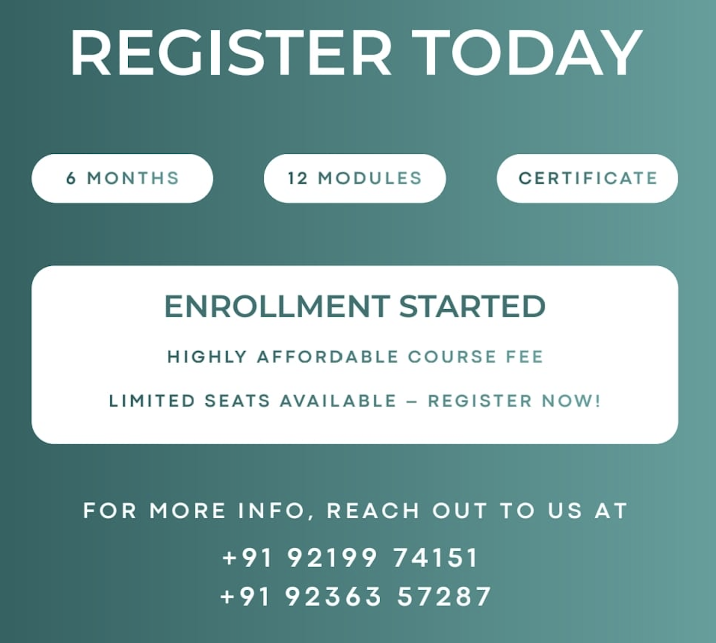 For registration or any queries, you can reply here